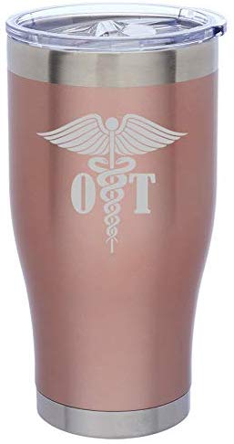 Some of us need a boost of caffeine to start our days… or a few more to keep us going. This stainless steel tumbler lets any OT show off their career while their caffeine stays secure inside.